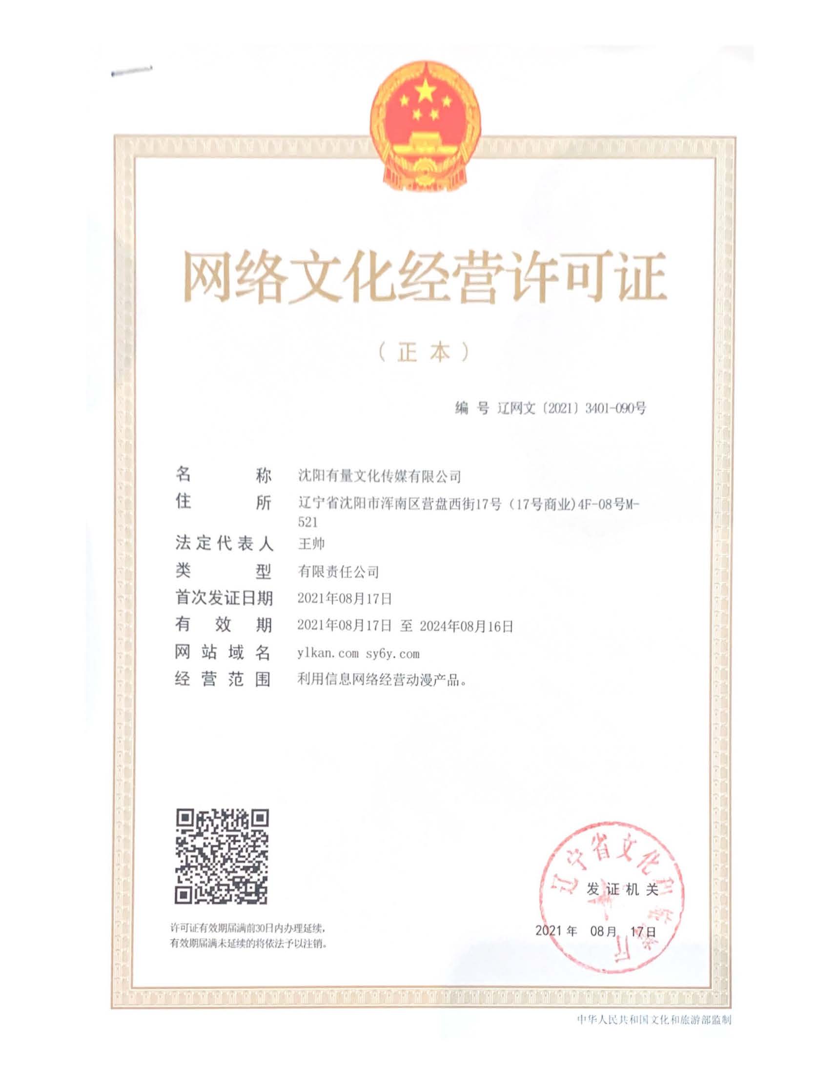 Copyright (C) 2022 沈陽有量文化傳媒有限公司 公司備案號:遼ICP備2021006768號-5 網(wǎng)絡(luò)文化經(jīng)營許可證編號 遼網(wǎng)文(2024)3556-587號 營業(yè)執(zhí)照